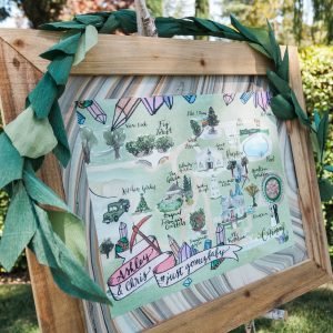 Ashley and Chris got married at Park Winters on a gorgeous August summer day. They were the most incredible couple to plan with! Throughout it all they never lost sight of their happiness and their excitement anticipation grew as we got closer. I remember on the day of the wedding, Ashley was so anxious because she just couldn’t wait to be married to Chris! Their smiles showed just how much love and admiration is shared between the two of them.Ashley and Chris were the ideal DIY couple, making everything from the signage and doughnut bar; to the wonderfully crafted copper piping arch way. Their inspiration for the wedding was a 1920’s mining vintage affair with a creative modern twist. Antique decor elements could be found everywhere such as the authentic railroad lanterns lining the aisle to her stunning custom mbloade veil. On display was a custom painted map of Park Winters so the guests could enjoy the property while sipping on champagne adorned with delicious rock candy. The food, oh the food! The guests started their evening with a delicious Bacon Bar…who doesn’t love bacon?! They had mac and cheese with brisket for dinner, and ended the evening with not only funfetti cake but donuts as well! The entire evening represented Ashley and Chris to a “T” and not a single detail was lost. It was an absolute pleasure to be a part of such an amazing wedding!Park Winters | Botanica Events | Bloomers Floral Design | La Tavola Linen | Cake Couture | Classic Party Rentals | Katie White Photography | Pigment and Parchment | SJ’s Disc Jockey | Maple and Moss | Eyliana Gibson