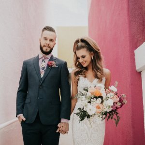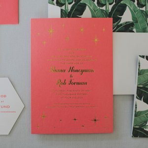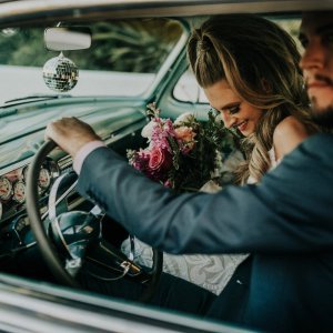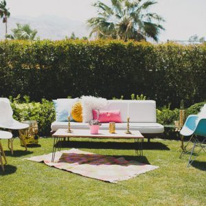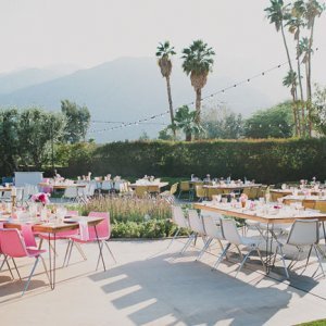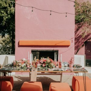 We are continuing our series on bringing destination weddings to you! This week… Palm Springs! Not everyone can jet out of town for their “I do’s”, so why not bring your dream destination to you?! Here’s some inspiration for the perfect Palm Springs shin-dig…The Ronnettes blare over the speakers while everyone dances in colorful mini dresses and gogo boots. Every room you’re in is full of mid-century modern furniture, and Palm Springs is in the center of it all. For your wedding, travel back in time to 1960s Palm Springs right from your home town. The most important part to pulling off this wedding is finding a vintage rental company with mid century modern furniture. Having those accents throughout will make your wedding feel trendy and on theme. In addition, playing with little disco balls on your tablescapes will be the perfect extra touch to your 60s party look. Get creative with hair and makeup! Do a stylish winged eyeliner and voluminous hair. Allow your guests to have fun, too. Make it an unforgettable extravaganza by opening it up for everyone to wear their favorite 60s look! And most important, don’t be afraid of color! Let the colors fly + mix and match patterns and prints. Photos: Pink Invitation | Couple in Car | Disco Champagne | Retro Invite | Pink Fireplace | Disco Table | Couple | Lounge Set | Tablescapes