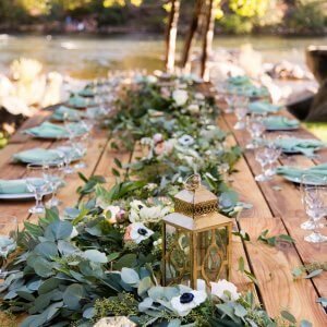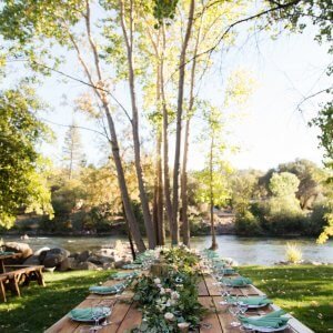 Location: Coloma Resort, Coloma, CA Wedding Style: Intimate campground wedding on the American River, full of blush, ivory, sage and navy Jen + Mark new the real meaning by their wedding day was what mattered most – and the feeling of true love, understanding, friendship and acceptance between them was palpable. The rushing South Fork American River provided the most breathtaking scenery for Jennifer + Mark’s big day. They organized a full weekend of activities for their family and friends, including an epic rafting adventure. The couple + all of their friends love camping together, so a campground was the perfect place to say ‘I do’. They even had Chando’s Tacos cater the big day – who doesn’t love a taco truck?! Shades of blush, ivory, sage, and hints of navy could be seen mingled among the greenery of the Coloma Resort. Dixon Florist created the most gorgeous arrangements of big blooms — Jennifer’s favorite flower, the lovely peony, could be seen all over the tables and in her lush bouquet. One of the most unique and memorable aspects of the day was the surprise bagpipe player (that was even a secret to their bridal party!) The piper played a full march into the ceremony + played as Jennifer gracefully made her way down the aisle. There wasn’t a dry eye to be found. With twinkling market lights overhead, the sounds of the flowing river, and the hum of laughter of friends and family, their wedding couldn’t have been sweeter. Sending lots of love and joy to the sweetest couple – Jennifer and Mark, we couldn’t be happier for you! Venue: Coloma Resort | Photographer: KMS Photography | Florals: Dixon Florist | Rentals: Celebrations | Catering: Chandos Tacos | Service Staff: Night and Day Productions | DJ: Extreme Productions | Beauty: Kiss and Makeup | Officiant: Cindie Wilding