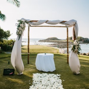 Katie and Dan had a stunning beach wedding at the Four Seasons in Punta Mita, Mexico.Katie and Dan did it right. This sweet couple took all of their closest friends and family and had the most incredible celebration in Mexico. Not only was their wedding picturesque, but it was filled with delicious food as well! The views were absolutely breathtaking, how could you not feel the love and romance in such an amazing place? Their wedding had beautiful accents of navy, blush and ivory that brought a little bit of sophistication to the beach. Also, how amazing to go on a once in a lifetime trip with your closest family and friends?!