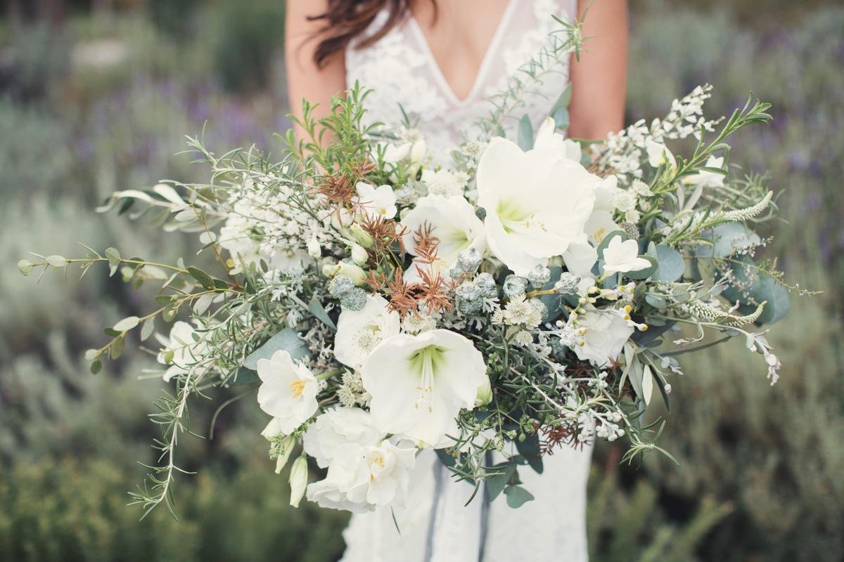 Handmade details made this romantic wedding at Park Winters, captured by Anne-Claire Brun Photography. With the help of her family members, the Bride created the save the dates and invitations featuring beautiful calligraphy and pretty painted greenery, rustic mug favors, and agate stone name cards, and the Groom built the unique ceremony arch from scratch – a wooden teepee that was draped with leafy, green garlands. See more of the lovingly crafted details, right here.