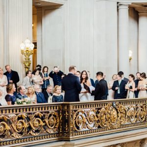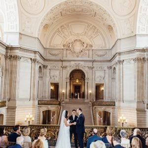 Photography: Ostara Photography | Venue: San Francisco City Hall | Catering: Park Tavern | Dress: Alvina Valenta | Beauty: Christi Reynolds Beauty | Shoes: BHLDLN | Jewelry: Margaret Elizabeth | Florist: Studio Mondine | Officiant: Tan Weddings and Events | Groom Suit: Hickey Freeman | Cake: Cake Bloom | Videographer: Robbie Lynn Production and Post & Beam Co. | Calligrapher: Hanwriting | Cable Car: San Francisco Cable Car | Linens: La Tavola Fine Linen