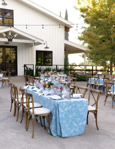 Christine wore a simple, refined gown that matched her graceful and soft-spoken personality. Craig looked equally timeless in a classic suit. French blue linens on the reception tables brought a sophisticated contrast to the vibrant florals. The overall design felt both elevated and meaningful. Guests commented all night on how beautiful and cohesive the space looked.