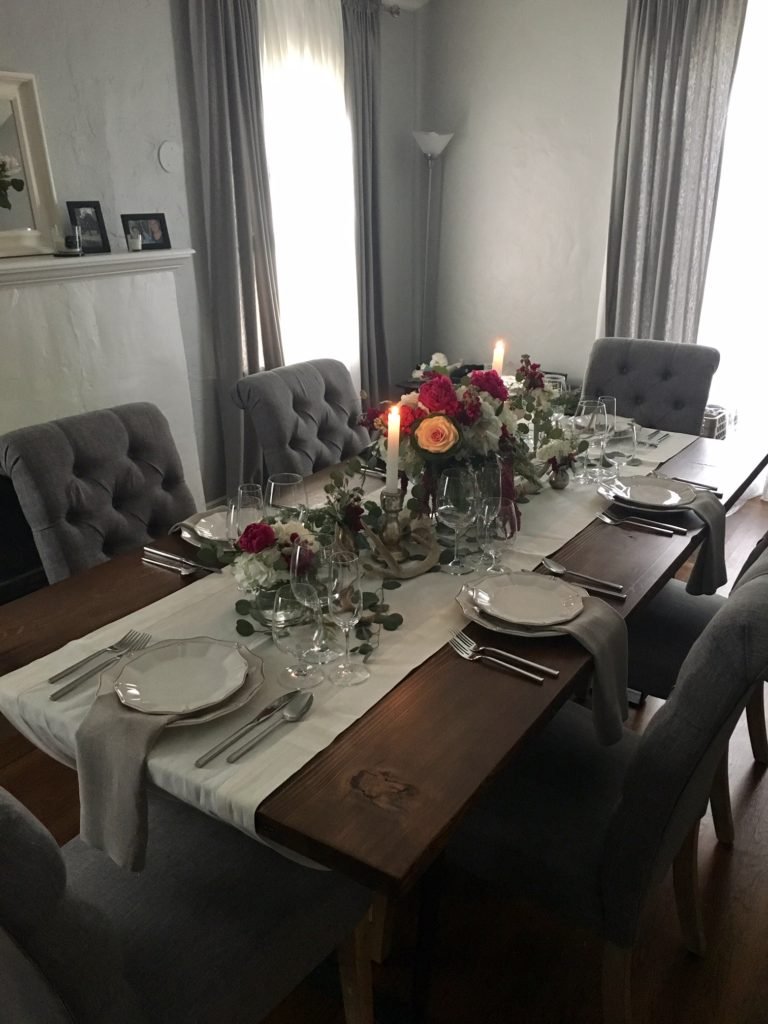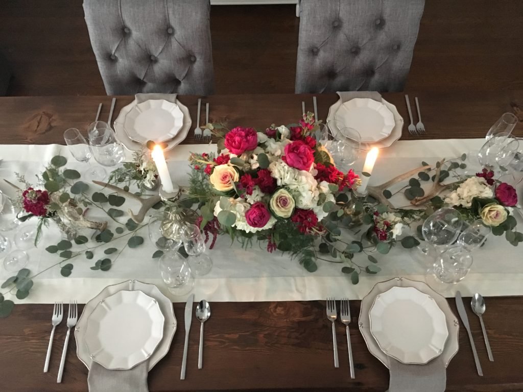 Yesterday we celebrated Thanksgiving surrounded by our friends & family – and we wanted to give you a little sneak peek into Sara’s home! With Grace & Love Events works with brides on wedding design throughout the year so it’s fun to bring our design world into our own homes for the holidays.Simplistic elegance was the idea behind the table design, with neutral palette and bright pops of color in the flowers. WithGrace & Love worked with a few of our favorite vendors renting tabletop items and took a DIY approach to the floral centerpieces to complete the look!Grey + white seem to be a running them towards the end of 2016 and we’re hoping the trend continues into 2017. Wedding design has long been stuck on blush pinks and we’re ready for a neutral change :)Linens – La Tavola Fine LinenRentals – Celebrations Party Rentals